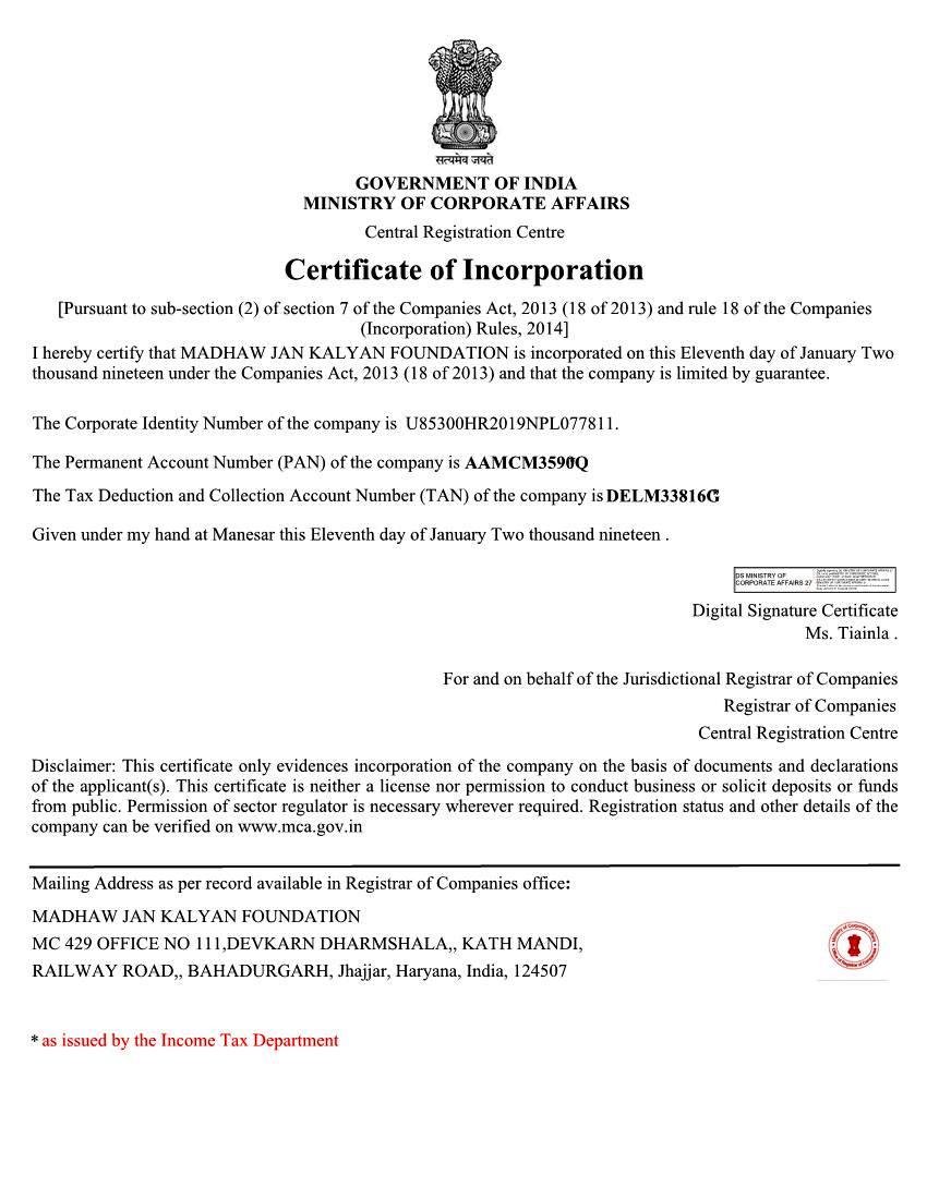 111, Devkaran Dharmshala, Railway Road, Bahadurgarh-125407 HR